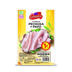 PAVOFRÍO fiambre de pechuga de pavo en lonchas sobre 80 gr